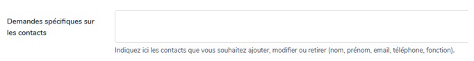 Pour tout ajout ou suppression de contact, utilisez ce champ texte (vous n’avez pas la main pour ajouter ou supprimer un contact). Nous nous chargeons des modifications