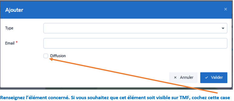 - Ajout d'un numéro de téléphone, d'un email ou d'une adresse de site internet :