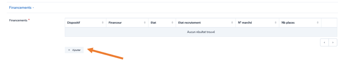 Pour indiquer un financement lié à la session, cliquez sur Ajouter puis