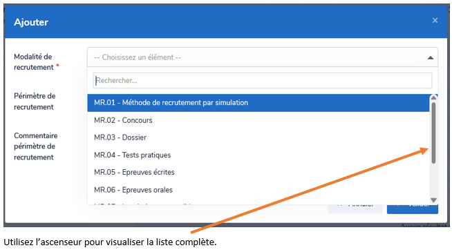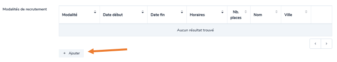 Pour indiquer une modalité de recrutement, cliquez sur « Ajouter »