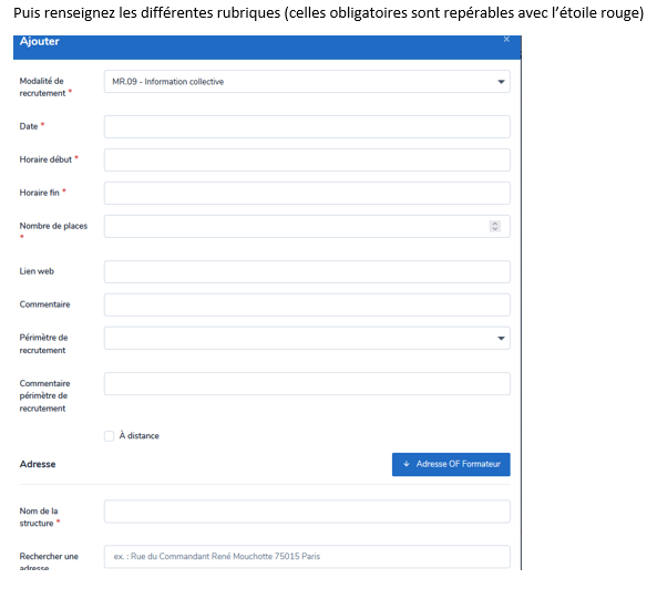 ð Recrutement sur candidature (l’organisme de formation fixe ses propres modalités de recrutement hors système) (modalité 7)