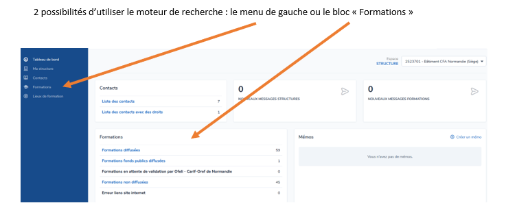 OF formateur : la recherche ne peut s'effectuer que sur les antennes ou établissements secondaires