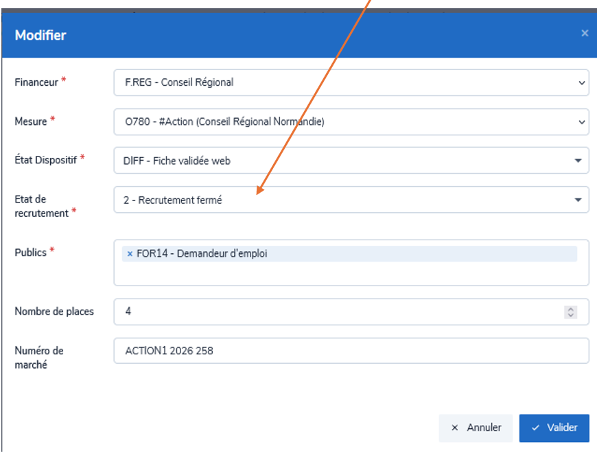 puis modifier l'Etat de recrutement en sélectionnant "Recrutement fermé"